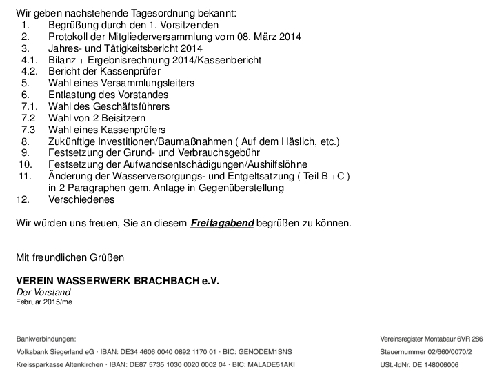 Jahreshaupt- / Mitgliederversammlung 2015